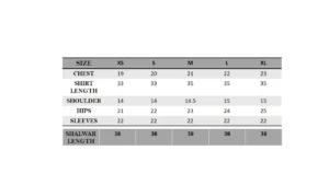 * Custom sizes beyond XL are made to order and extra charges will be applicable.